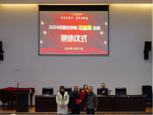 初心育桃李,韶华铸师魂。会议最后为范智勇老师举行了温馨的荣休仪式。范老师用认真严谨的态度、无私奉献的精神为校院发展贡献了自己的青春和智慧,彰显了高尚的师德风范和育人情怀。TapTap荣休活动让尊师重教文化持续弘扬,激励更多青年教师成为“经师”和“人师”相统一的“大先生”。